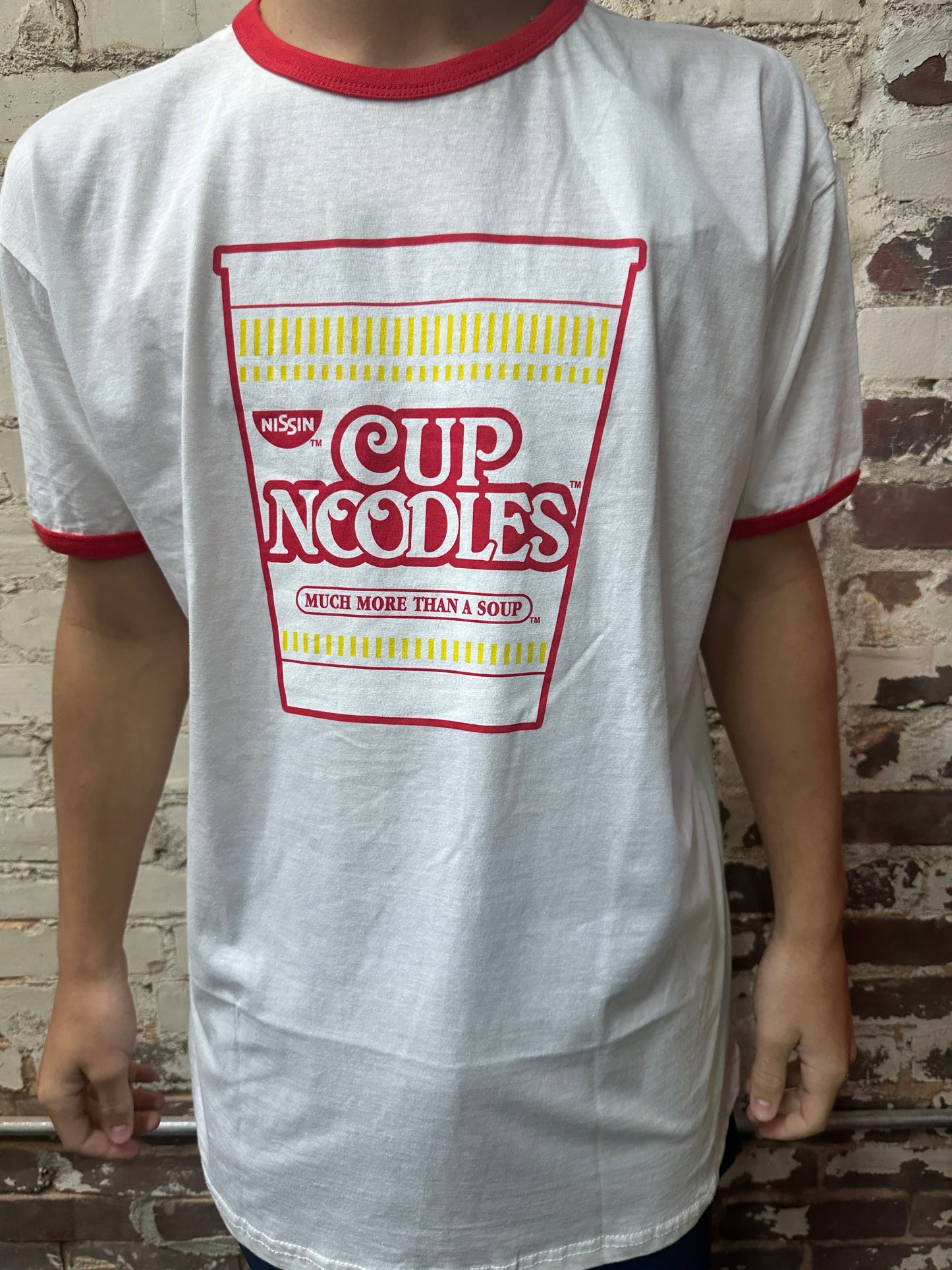 Indulge in nostalgia with our Nissin Cup Noodles Ringer T-Shirt, celebrating the beloved instant meal that's been a quick-fix favorite for decades. Crafted with premium materials, this tee boasts the iconic Cup Noodles logo in vibrant hues, offering a retro-inspired look that stands out. The classic ringer style adds a timeless touch to your wardrobe, making it perfect for casual outings or lounging at home.